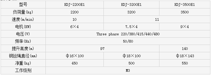 商場專用電動葫蘆KDJ-2200E1-3200E1-3500E1技術參數: