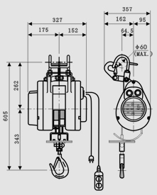 2、當拉力繩接觸限動臂,自動停止提升。