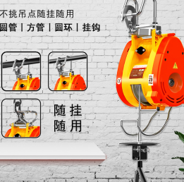 電動葫蘆生產廠家為了進一步提高小金剛電動葫蘆的便利性能,將電動葫蘆的吊鉤設置成了雙吊鉤形式,既有普通電動葫蘆所有的封閉式吊環式吊鉤,又有較長的大吊鉤,無論是圓管、方管,還是圓環都能輕松將電動葫蘆掛在上面。