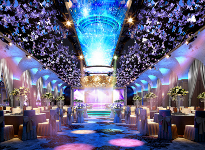 像五星級(jí)酒店的宴會(huì)廳可以舉辦各類(lèi)婚慶活動(dòng)、大型演講活動(dòng)、售賣(mài)活動(dòng)、新聞發(fā)布會(huì)、小型文藝演出等,對(duì)現(xiàn)場(chǎng)場(chǎng)景布置的要求等級(jí)較高,只有富麗堂皇、高大華麗、異彩紛呈的活動(dòng)現(xiàn)場(chǎng)才能獲得參會(huì)人員的欣賞和青睞。燈具作為宴會(huì)廳上的重要裝飾工具,能夠?yàn)槲枧_(tái)和大廳提供基本的照明功能和精彩的裝飾功能。