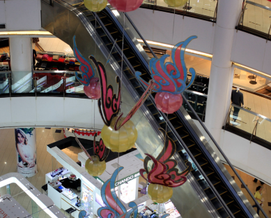 商場(chǎng)中庭部分經(jīng)常會(huì)有一些廣告展示、燈飾、造型等等,而這些物件都